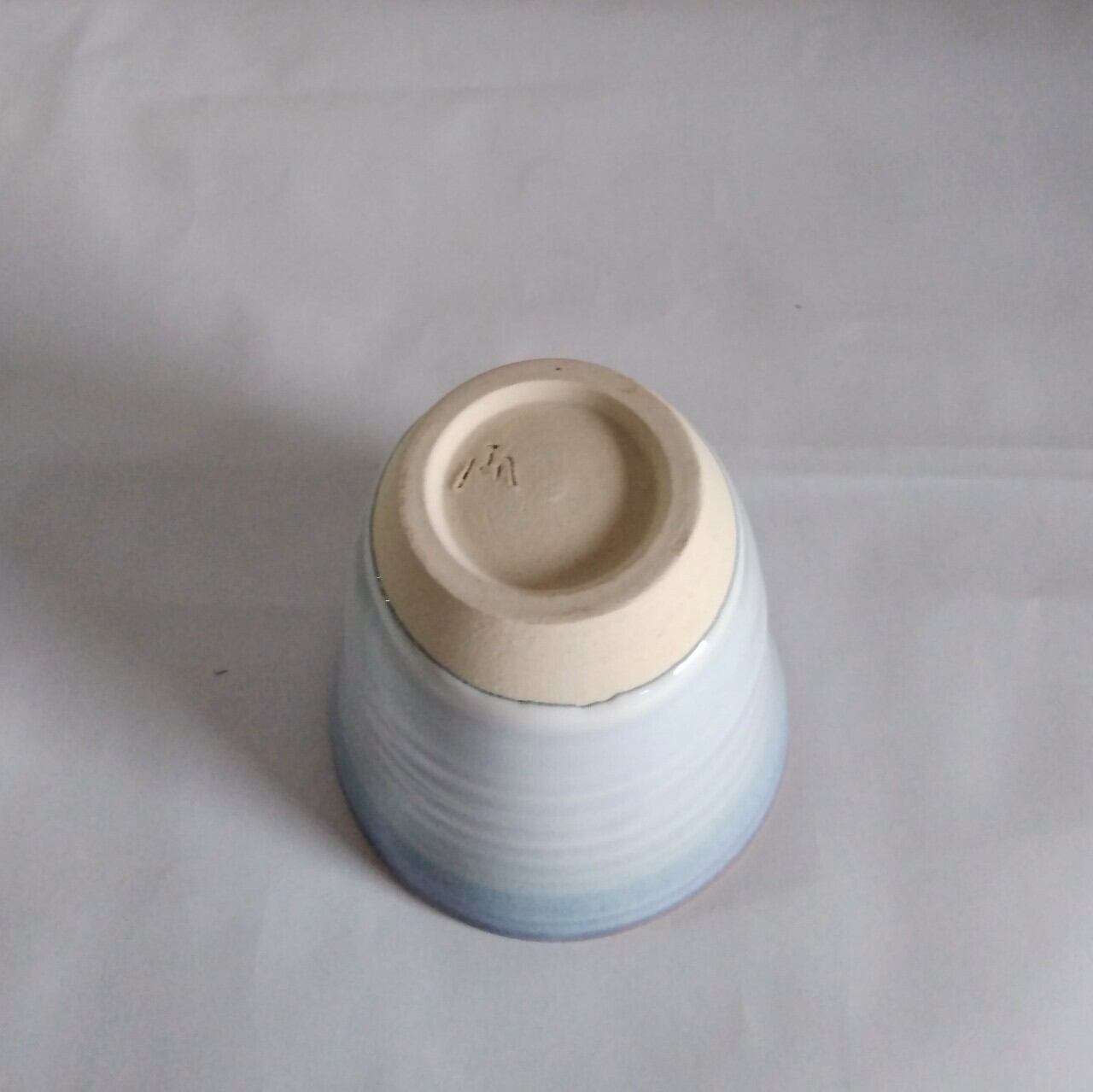 新しい釉薬を使ったフリーカップです。軽さとふちの紫色のグラデーションが魅力の器です。(9.4㎝×9㎝ 180g 陶器 電子レンジ可)