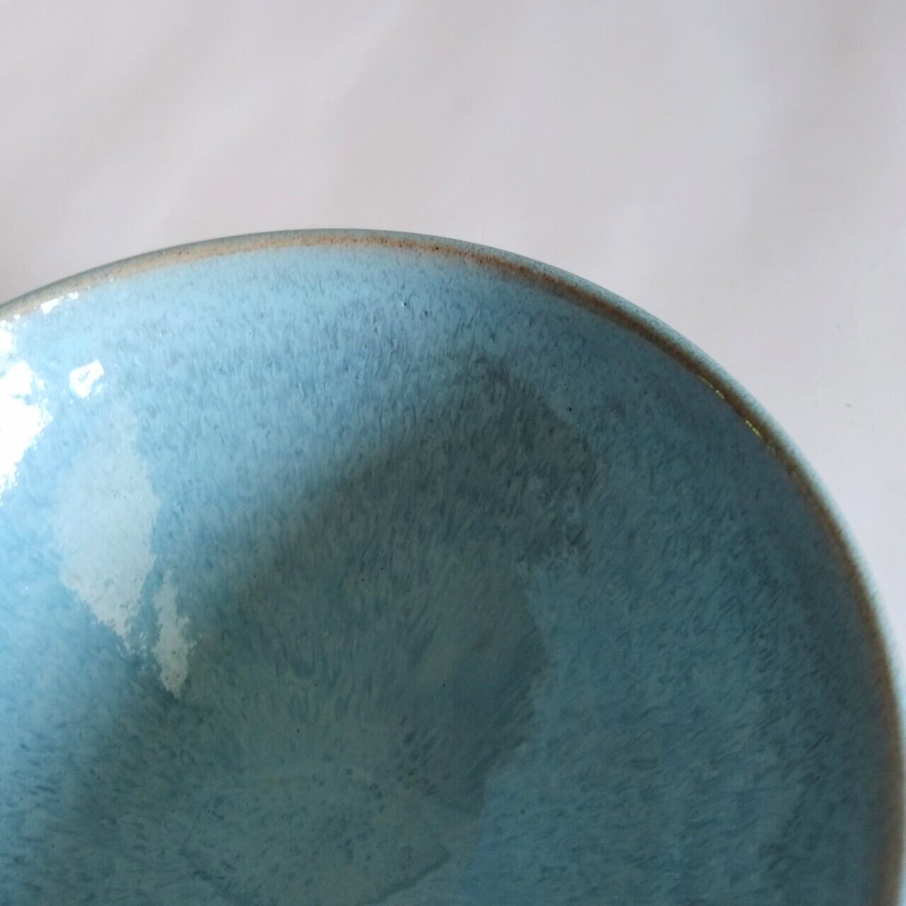 ろくろづくりのご飯茶碗です。人気カラーのブルーは釉薬による発色のため内側、外側とも変化があります。(直径11.8 ×5.7㎝ 200g 電子レンジ可 陶器)